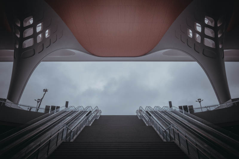 现代建筑下的阶梯与天空