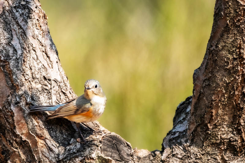 小鸟栖息在树干上