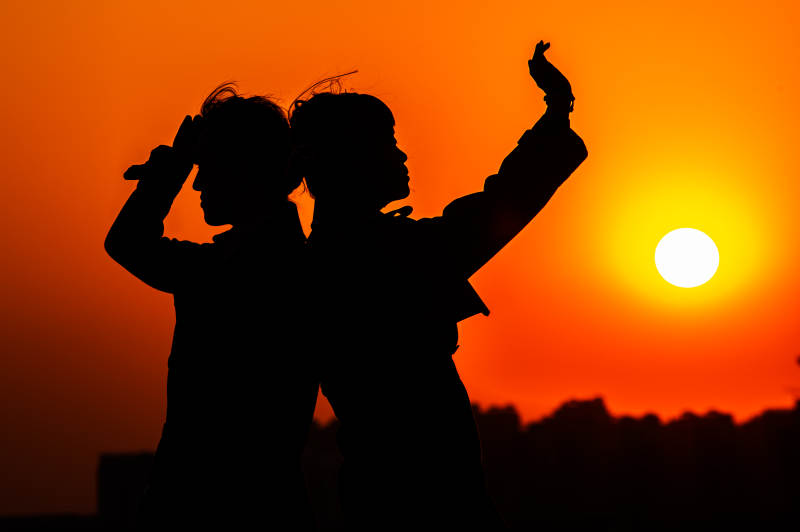 夕阳下的剪影自拍