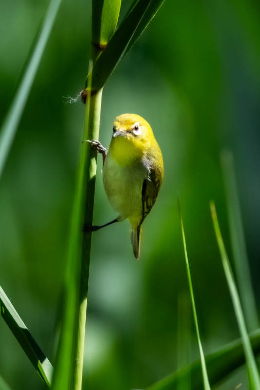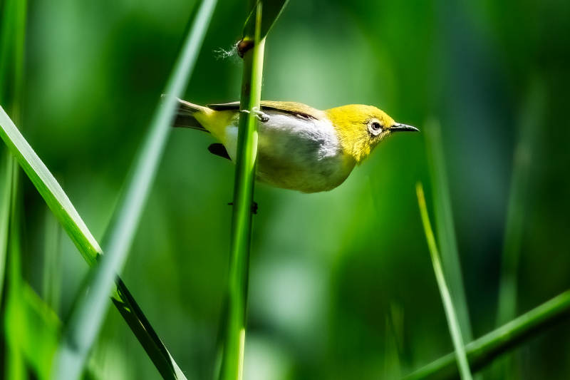 绣眼鸟栖息在绿草间