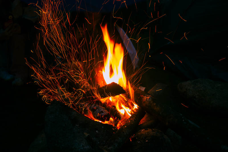 夜色篝火 火花飞舞