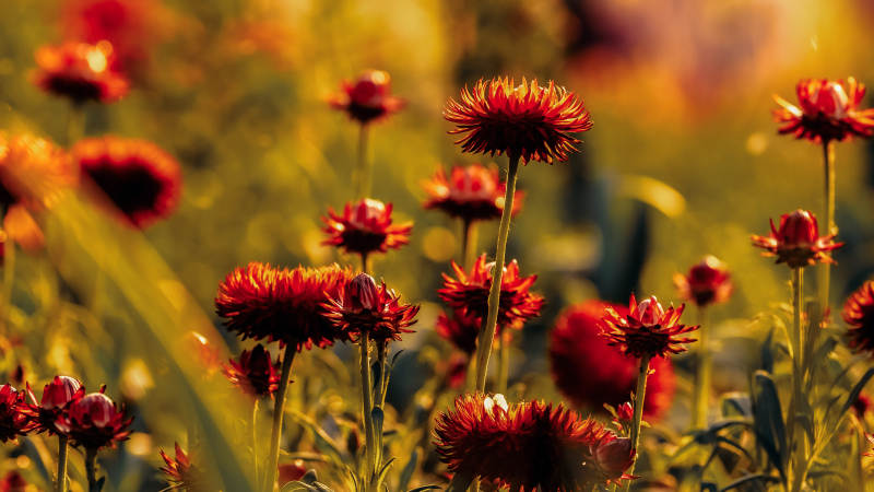 夕阳下的红色花海
