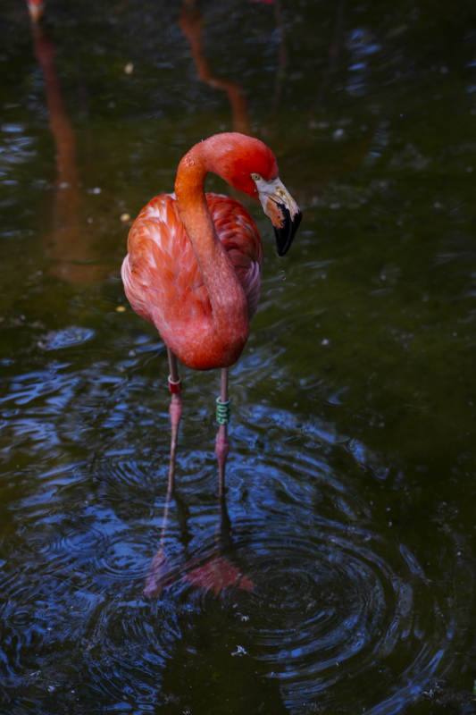 粉红火烈鸟水中觅食