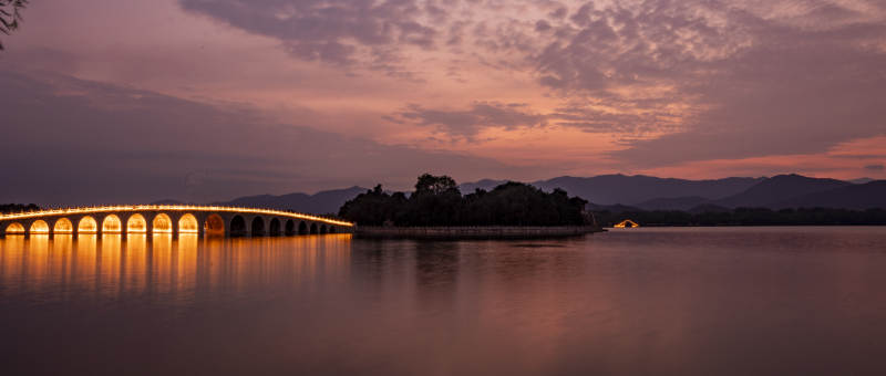 颐和园十七孔桥晚霞