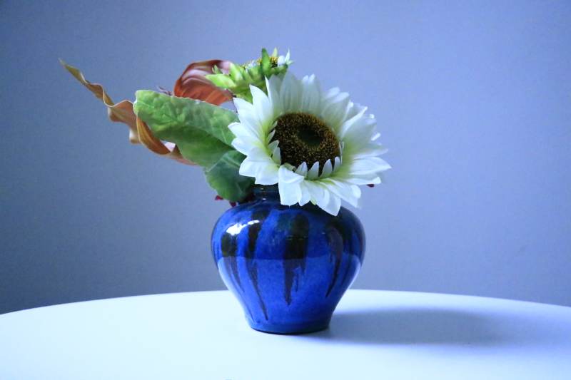 蓝瓶白花静物图