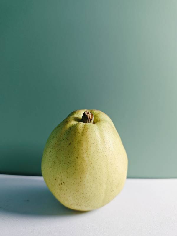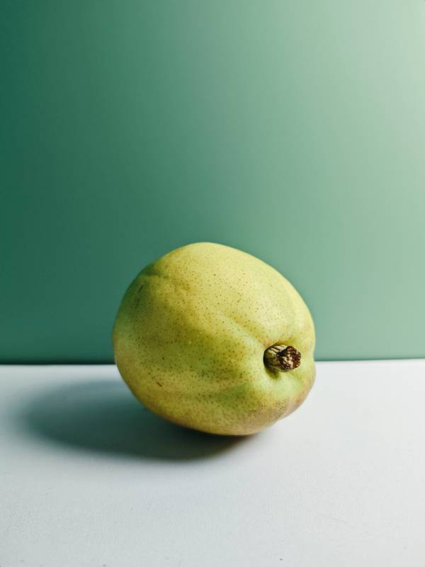 青绿色的梨静置于桌面