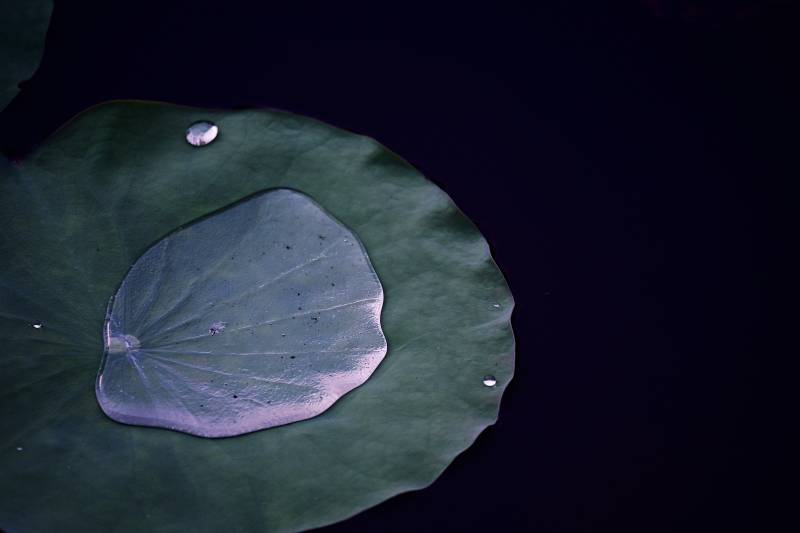 荷叶上的水滴与倒影
