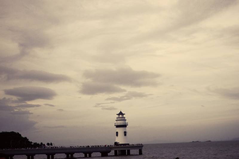 海边灯塔 傍晚云雾缭绕