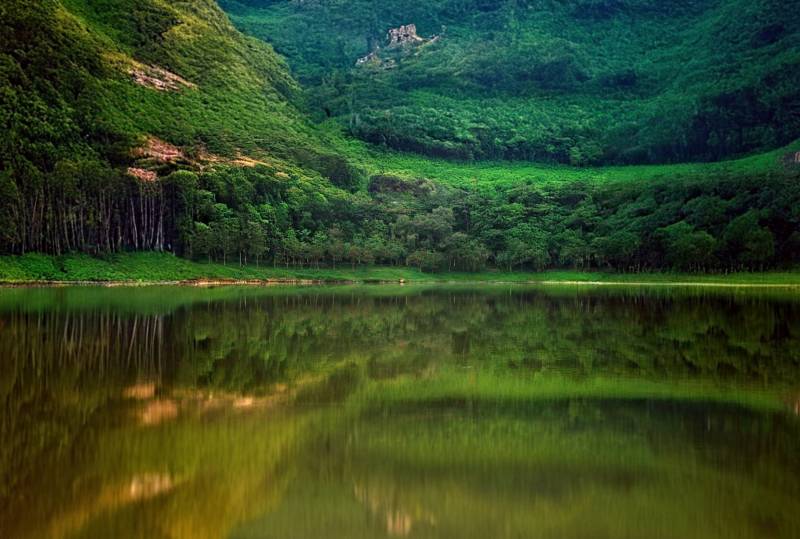 青山绿水与湖面相映