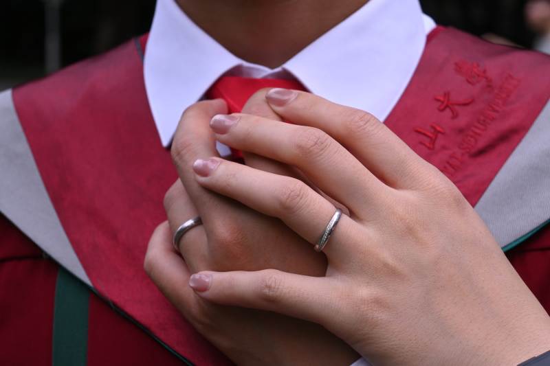 毕业典礼上的牵手瞬间