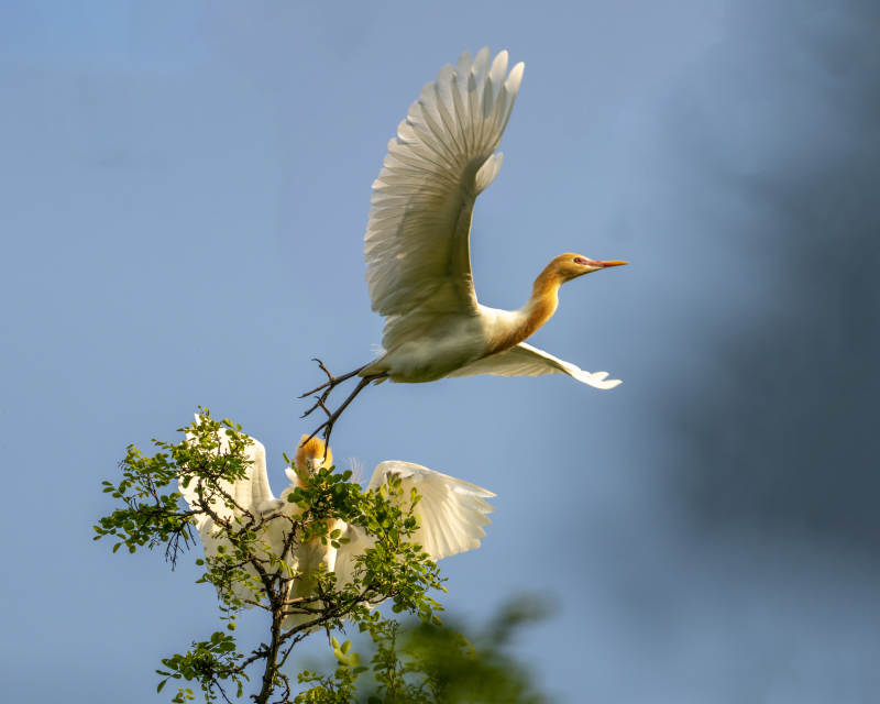 树梢上的两只白鹭