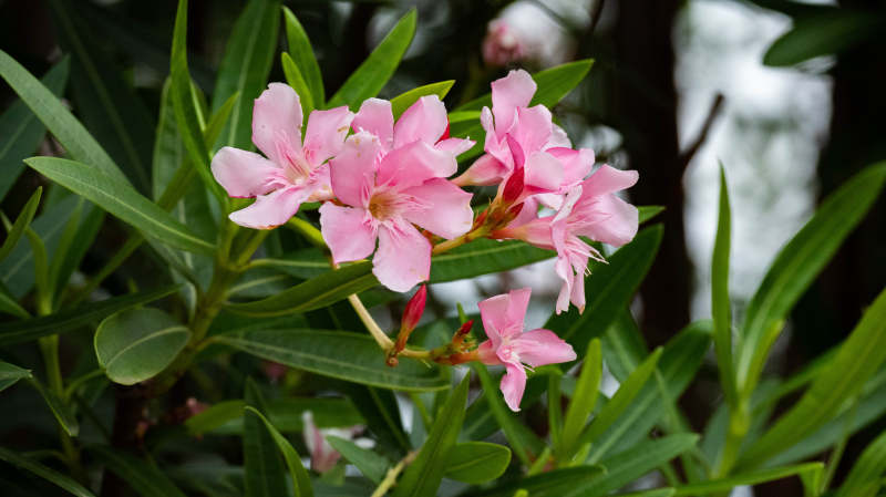 粉色花朵与绿叶