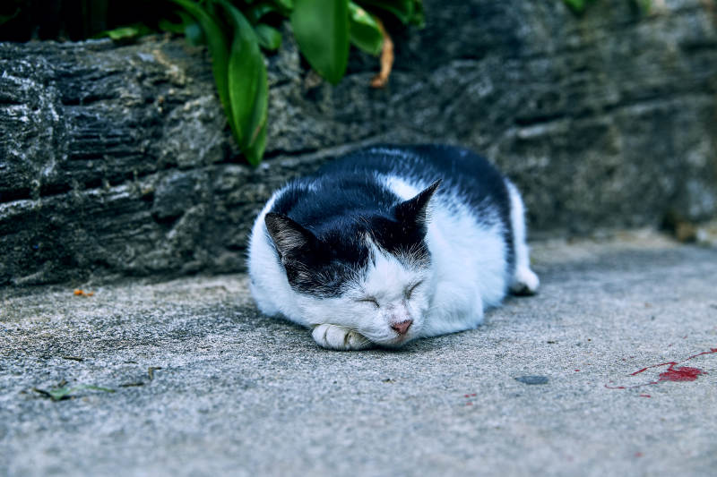 悠闲的黑白猫小憩