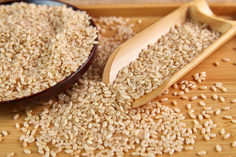 糙米与木勺特写