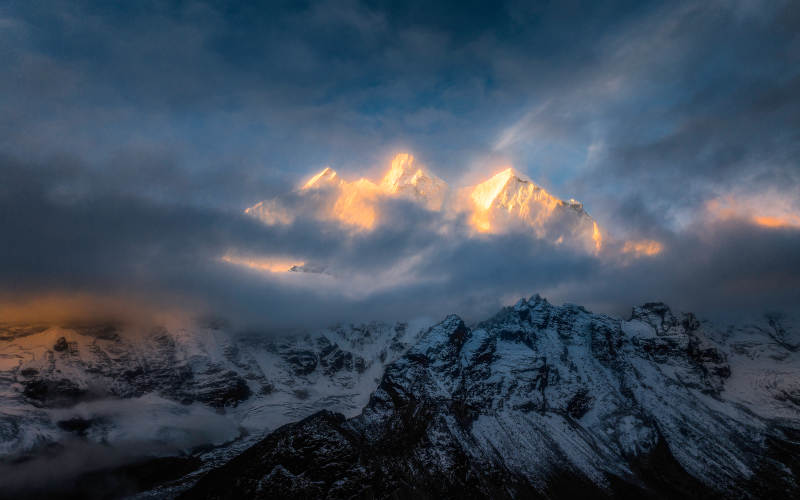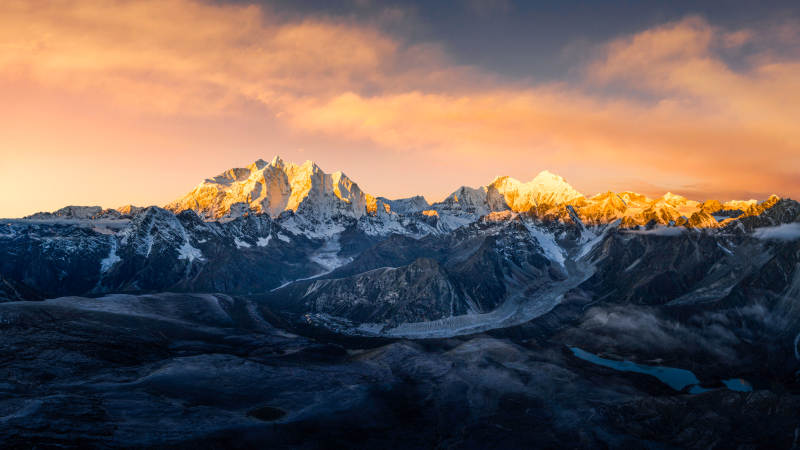 雪山日落 金光璀璨