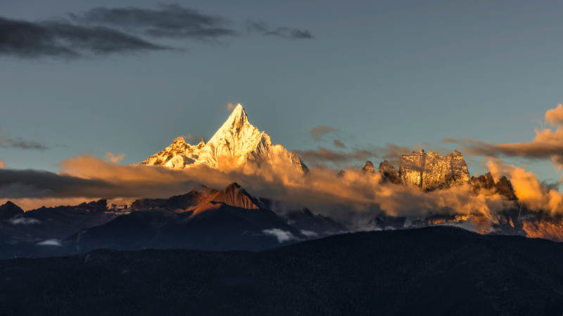雪山夕照 云海缭绕