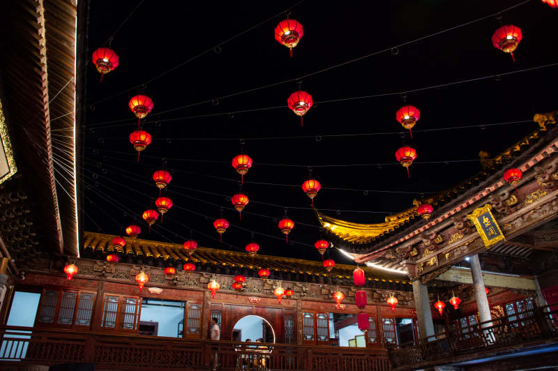 红柱廊下挂灯笼
