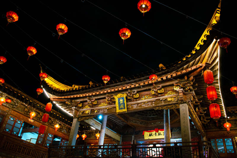 飞檐红灯映蓝天