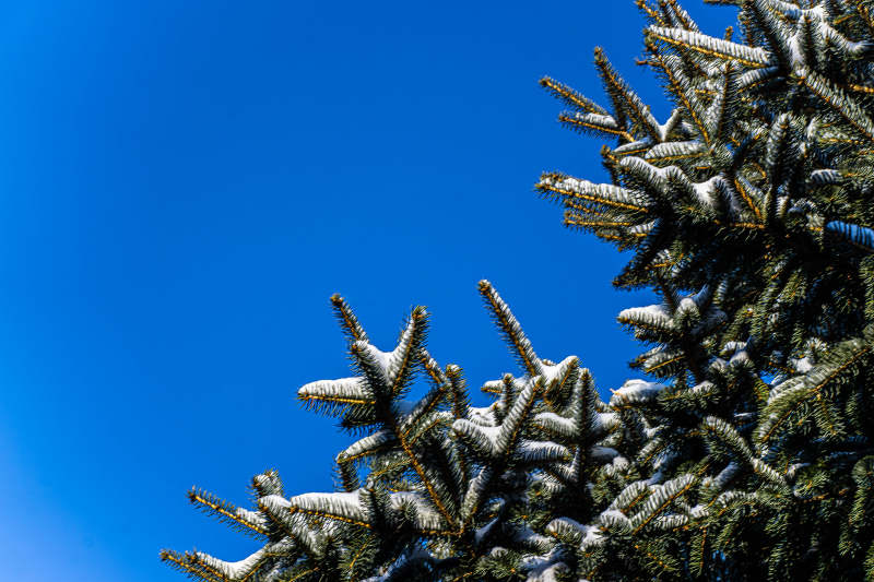 雪覆松枝映蓝天