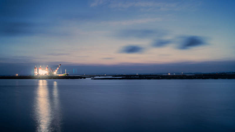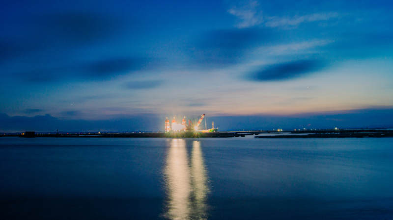 夜幕下的港口灯火辉煌