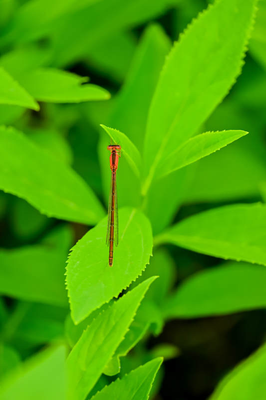 绿叶上的红色蜻蜓