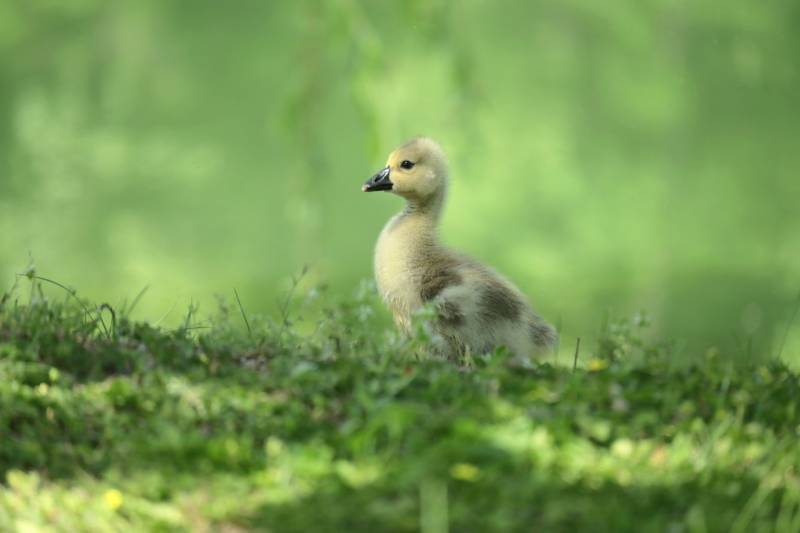 小鹅在草地上探索