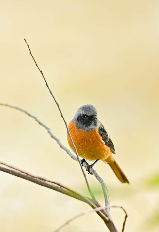 橙色小鸟栖息枝头