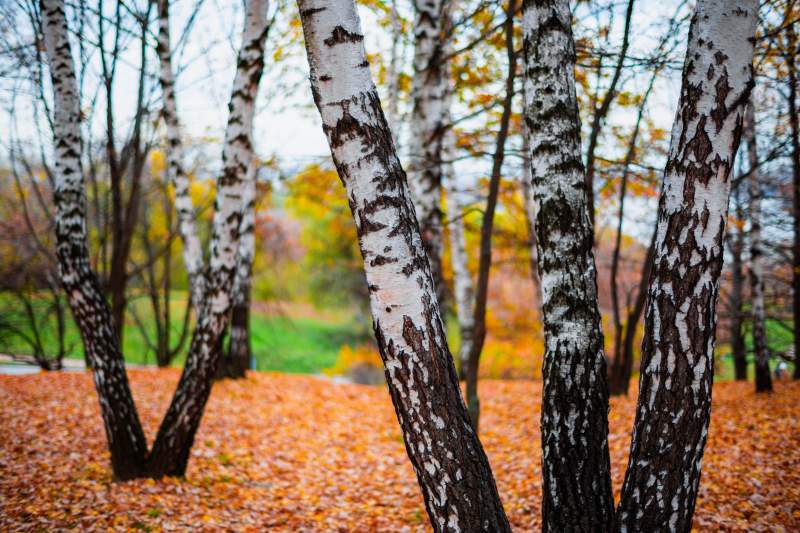 秋日林间落叶铺地