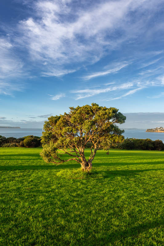 海边孤树映蓝天