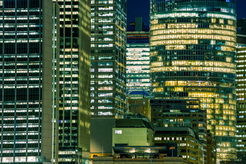 夜幕下的城市高楼群