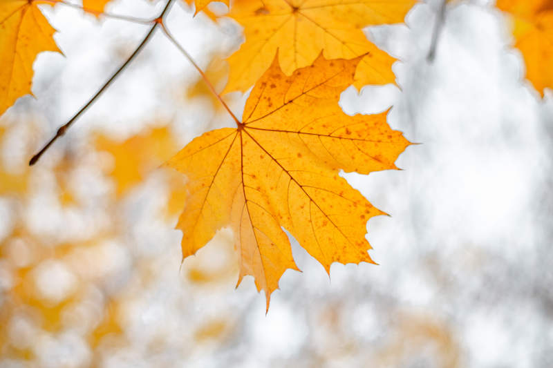 秋日金黄枫叶特写