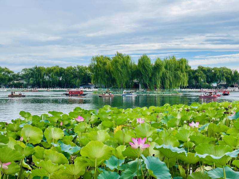北京什刹海荷塘映翠 湖畔柳影轻摇