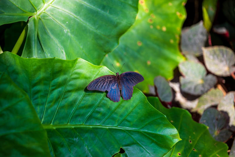 绿叶上的紫蝶静憩