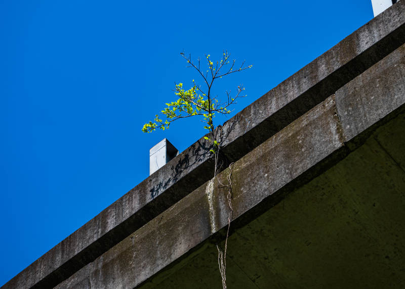 桥上顽强生长的小树