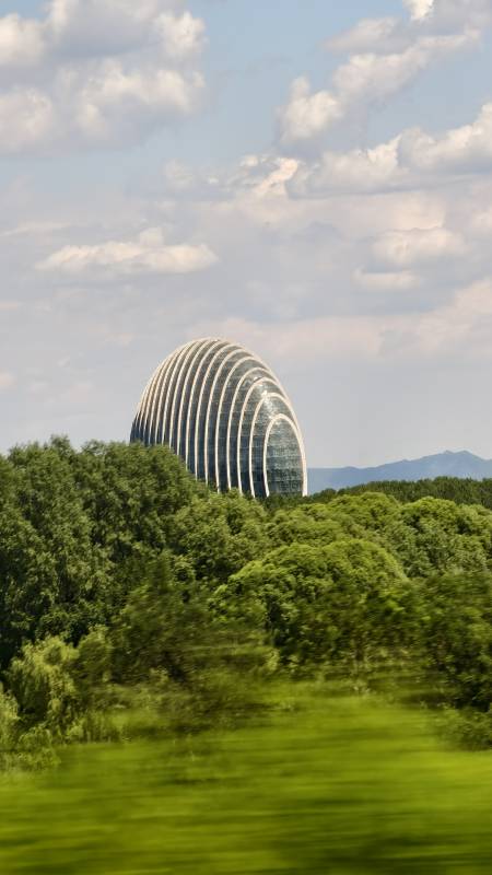 绿色森林中的现代建筑(日出东方凯宾斯基)