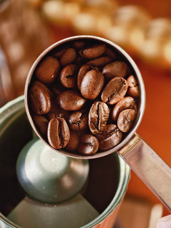 咖啡豆与磨豆机特写