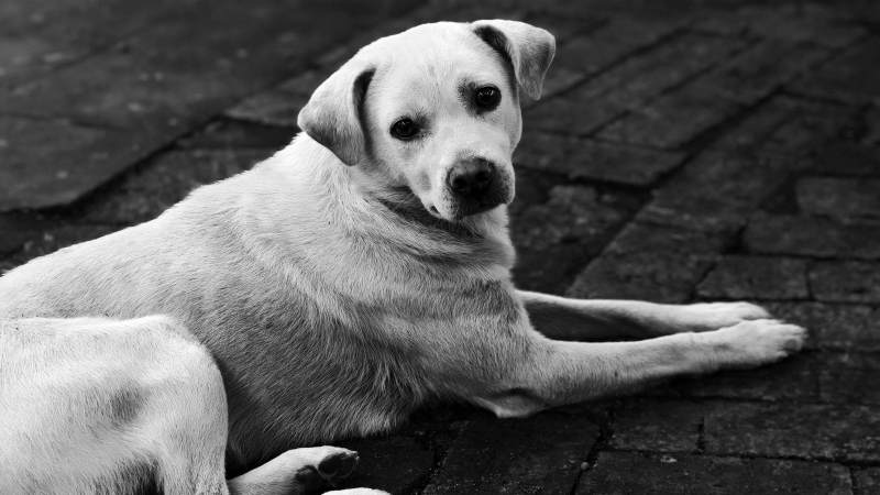 黑白世界中的宁静狗狗