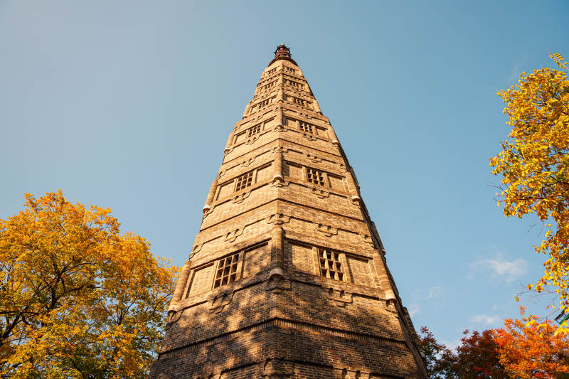 杭州保俶塔秋叶映塔影