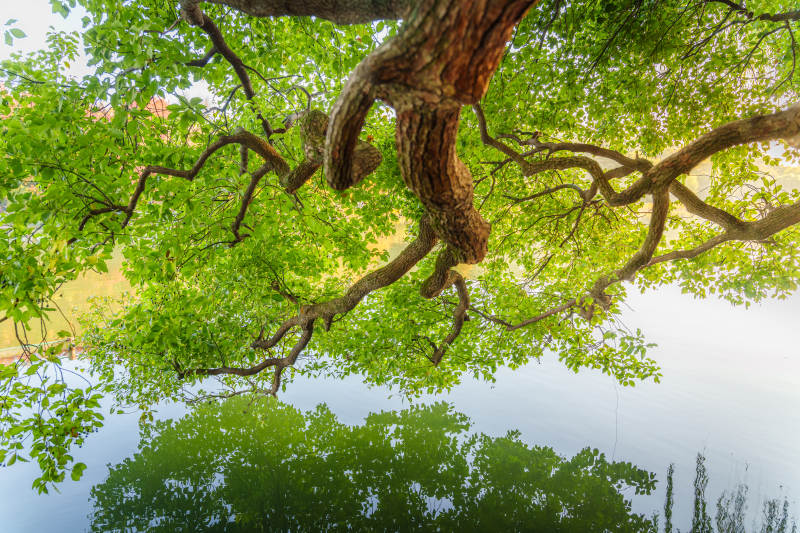 树影倒映湖中