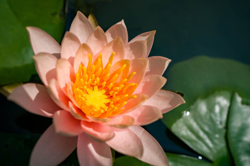 粉色睡莲绽放水中