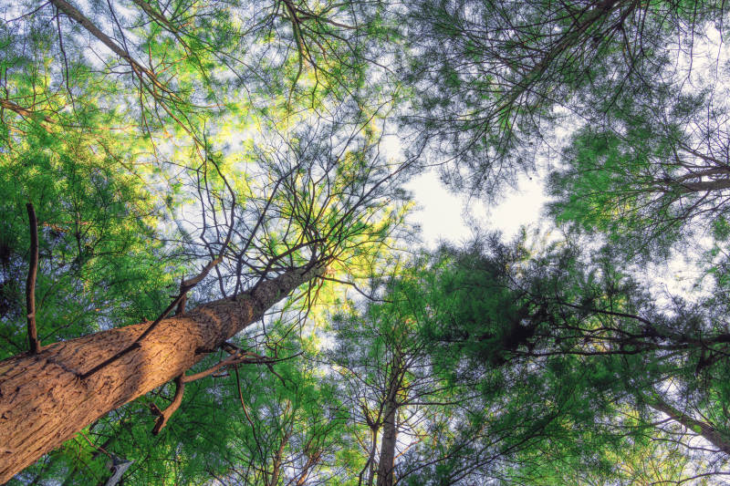 仰望森林 阳光斑驳