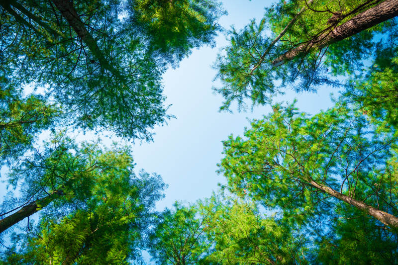 仰望森林 蓝天映衬绿意