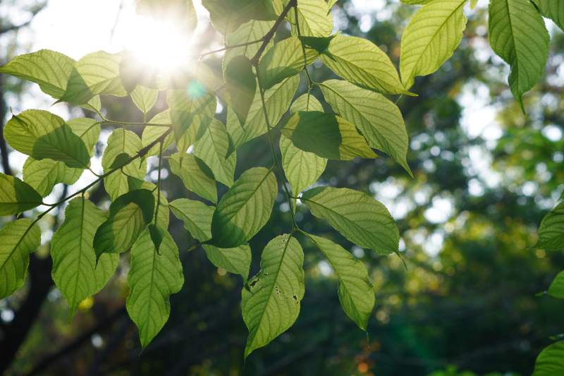 阳光穿透绿叶的瞬间