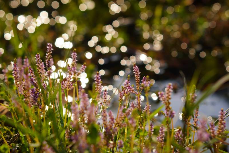 夕阳下的花丛光影