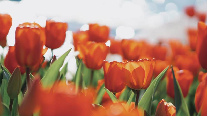 橙色郁金香花海绽放