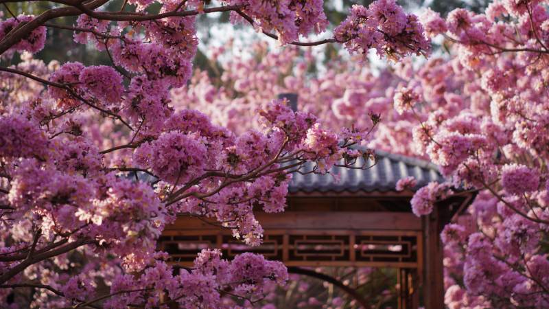 樱花盛开 亭台掩映