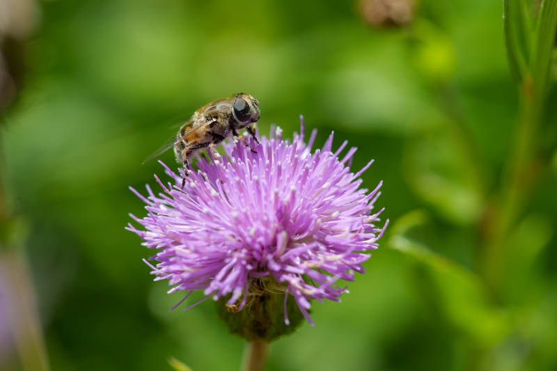 蜜蜂采蜜在紫色花上