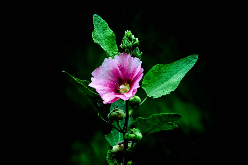 蜀葵花朵在黑暗中绽放
