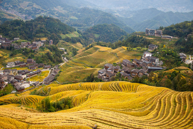 金色梯田 山村秋景 广西龙脊梯田金坑大寨