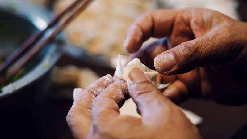 手工制作馄饨的瞬间